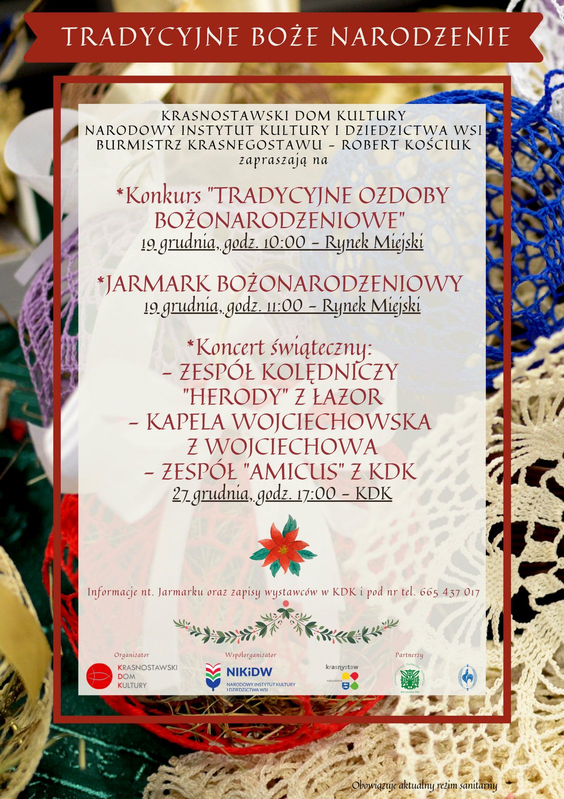 Koncert, podczas którego wystąpią: Zespół kolędniczy „Herody” z Łazor, Kapela Wojciechowska z Wojciechowa i Zespół „Amicus” z KDK.