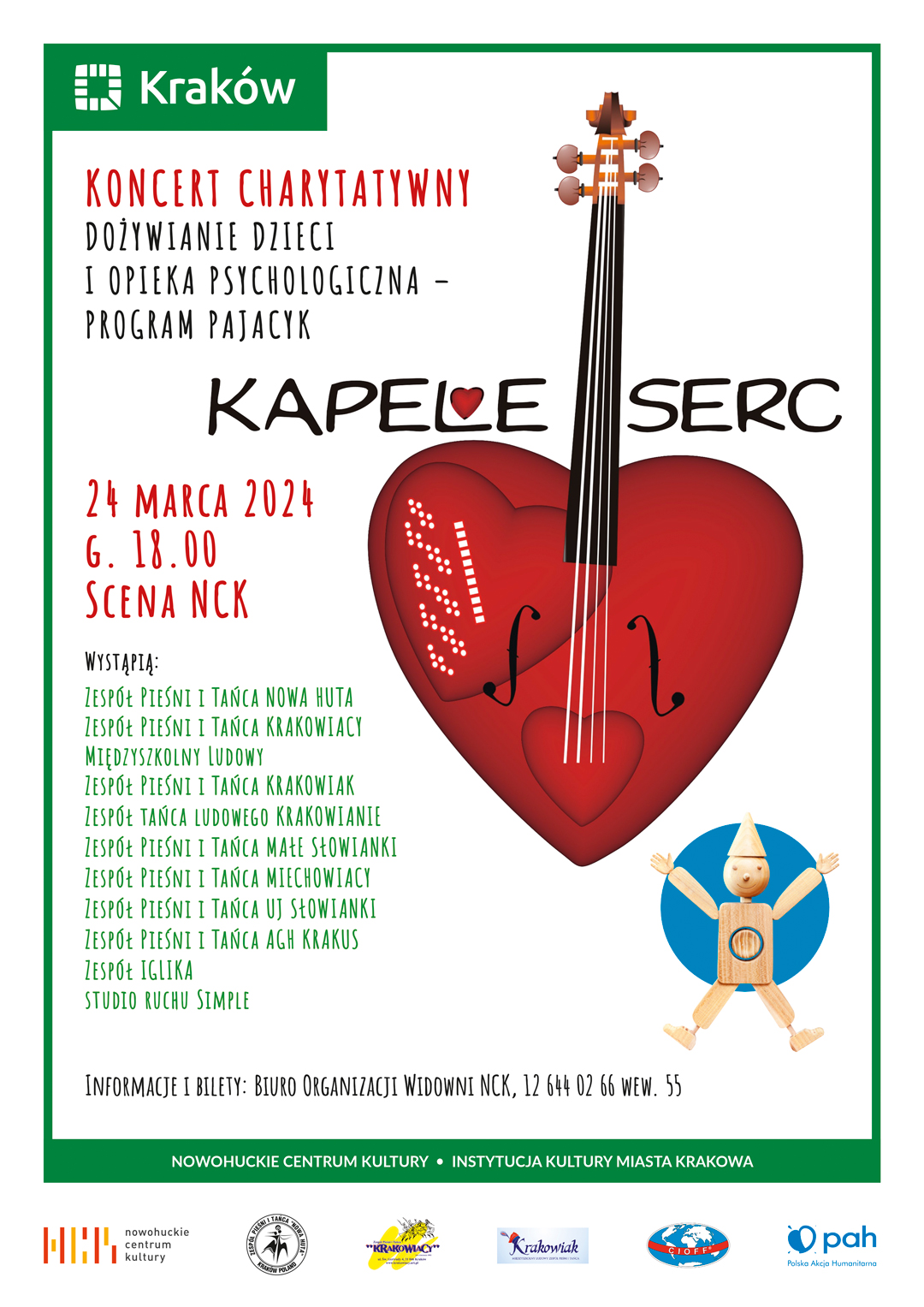 Ogólnopolska akcja zainicjowana przez Polską Sekcję Międzynarodowej Rady Stowarzyszeń Folklorystycznych, Festiwali i Sztuki Ludowej CIOFF – po raz 14. w Nowohuckim Centrum Kultury! Podczas koncertu zorganizowana będzie zbiórka wspierająca dzieci w programie Pajacyk w Polskiej Akcji Humanitarnej.