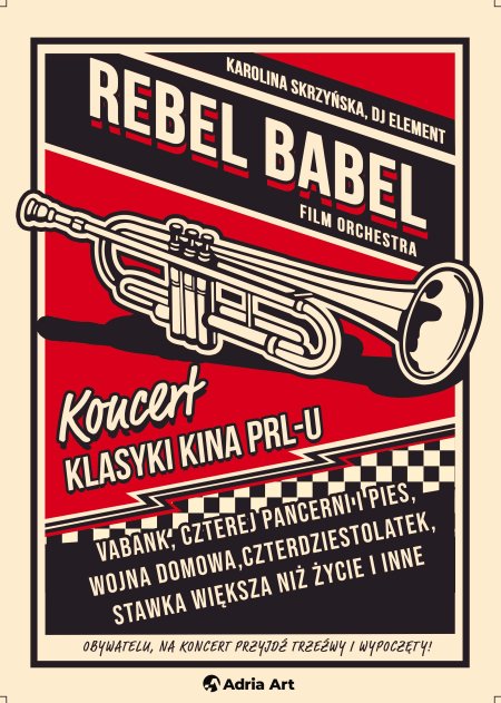 Rebel Babel Film Orchestra zaprasza na wyjątkowy koncert, podczas którego wybrzmią hity z polskich filmów i seriali z okresu PRL w nowych, oryginalnych aranżacjach. Przygotuj się na muzyczną podróż w czasie, pełną nostalgii i niezapomnianych melodii.