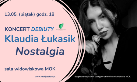 Klaudia Łukasik mieszka w Karczewie. Amatorka śpiewu urodzona jesienią. Od czasów szkoły podstawowej występuje na różnych konkursach piosenki zagranicznej oraz piosenki polskiej. Laureatka kilkunastu konkursów wokalnych. W wolnym czasie maluje obrazy na sprzedaż, głównie studium martwej natury. Koncert w Józefowie jest jej drugim koncertem solowym. Podczas wydarzenia przeniesiemy się do czasów nostalgii oraz wrócimy do twórczości barwnych postaci, takich jak: Amy Winehouse, Doris Day, Kurt Cobain czy Grace Jones. Nie zabraknie też utworów muzyków nieco nowocześniejszych: Myslovitz, Dawida Podsiadło, Lany Del Rey.