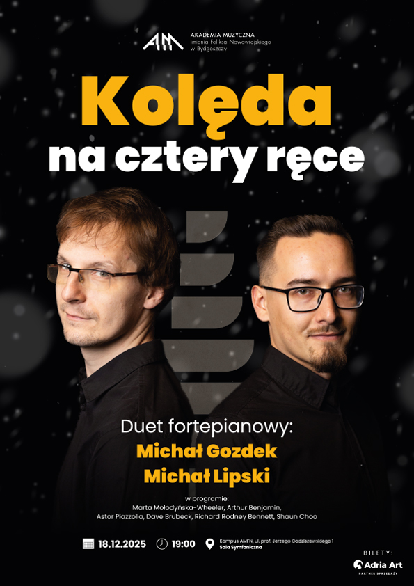 Podczas wyjątkowego koncertu usłyszymy kolędy w aranżacjach Marty Mołodyńskiej-Wheeler. Niepowtarzalny klimat zapewnią brzmienia utworów z szeroko pojętego świata jazzu. Ze znakomitym duetem fortepianowym: Michałem Gozdkiem oraz Michałem Lipskim muzyka stanie się bramą do niezwykłego, pełnego ciepła świątecznego świata.