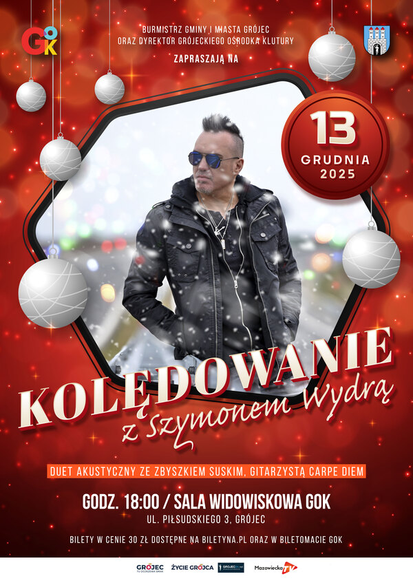 ➡️ Kto wystąpi? Gwiazda wieczoru, SZYMON WYDRA, w akustycznym duecie! Towarzyszyć mu będzie ZBYSZEK SUSKI, gitarzysta zespołu Carpe Diem. To będzie wyjątkowa okazja usłyszeć ulubione utwory oraz tradycyjne kolędy w zupełnie nowej, kameralnej aranżacji.