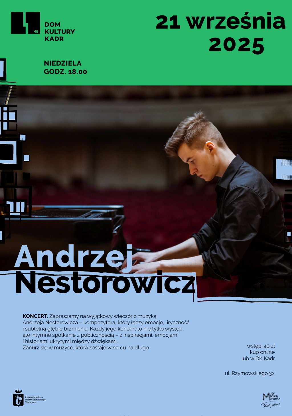 wstęp: 40 zł, kup bilet online lub w recepcji DK Kadr