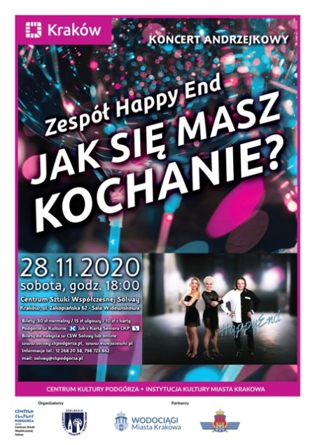 Serdecznie zapraszamy na koncert Andrzejkowy podczas którego wystapi zespół HAPPY END w programie: Jak się masz kochanie?