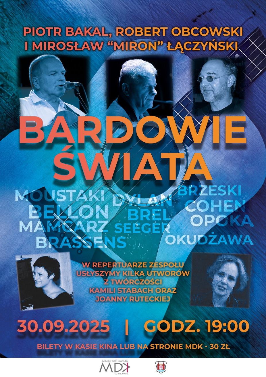 Koncert zatytułowany "Bardowie Świata" to muzyczna podróż przez twórczość najwybitniejszych bardów, którzy na przestrzeni lat wzruszali, inspirowali i poruszali słuchaczy na całym świecie.
