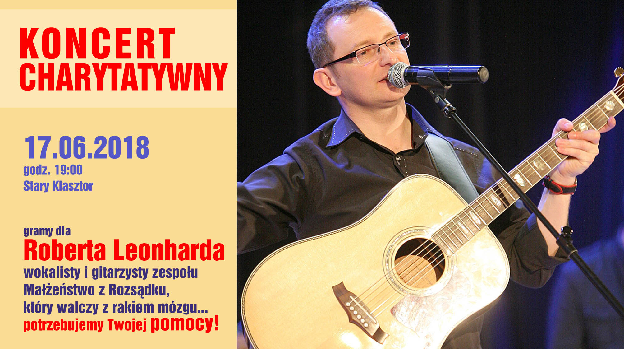Wolna Grupa Bukowina, Małżeństwo z Rozsądku oraz zespół Jan i Klan wystąpią 17 czerwca w Sali Gotyckiej w Starym Klasztorze, aby pomóc w zbiórce pieniędzy na pokrycie kosztów leczenia wrocławskiego muzyka Roberta Leonharda, który walczy z rakiem mózgu.