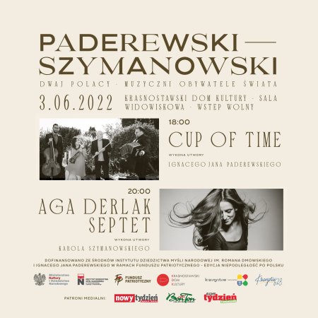 Goście festiwalu, czyli Septet Agi Derlak i grupa Cup of Time sięgną do dorobku kulturowego jego patronów, jak również odniosą się do ich działalności patriotycznej i reformatorskiej. Twórczość tych dwóch wielkich Polaków posłuży, jako inspiracja do zaprezentowania współczesnej odpowiedzi na muzykę polską początku XX wieku.