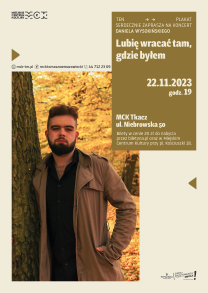 Koncert Daniela Wysokińskiego ,,Lubię wracać tam, gdzie byłem", który odbędzie się 22 listopada 2023 o godz.19 w MCK Tkacz ul. Niebrowska 53, Tomaszów Mazowiecki