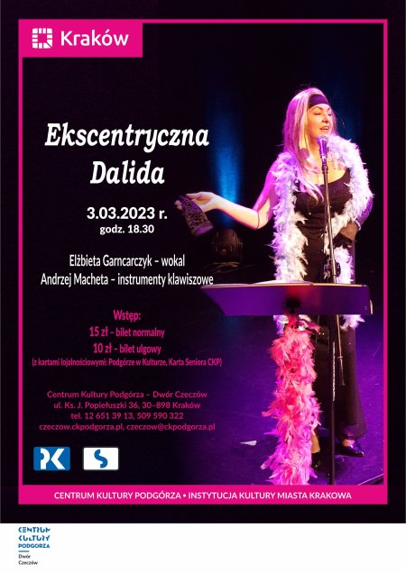 Koncert muzyczny poświęcony francuskiej piosenkarce włoskiego pochodzenia, aktorce i modelce - Dalidzie. W programie pojawi się ok. 13 utworów pochodzących z repertuaru tej Artystki, śpiewanych w językach: francuskim, włoskim i polskim. Znajdą się w nich najbardziej znane przeboje Dalidy, takie jak "Parole, parole", "Ciao Bambina", "Gigi LAmoroso" i inne.