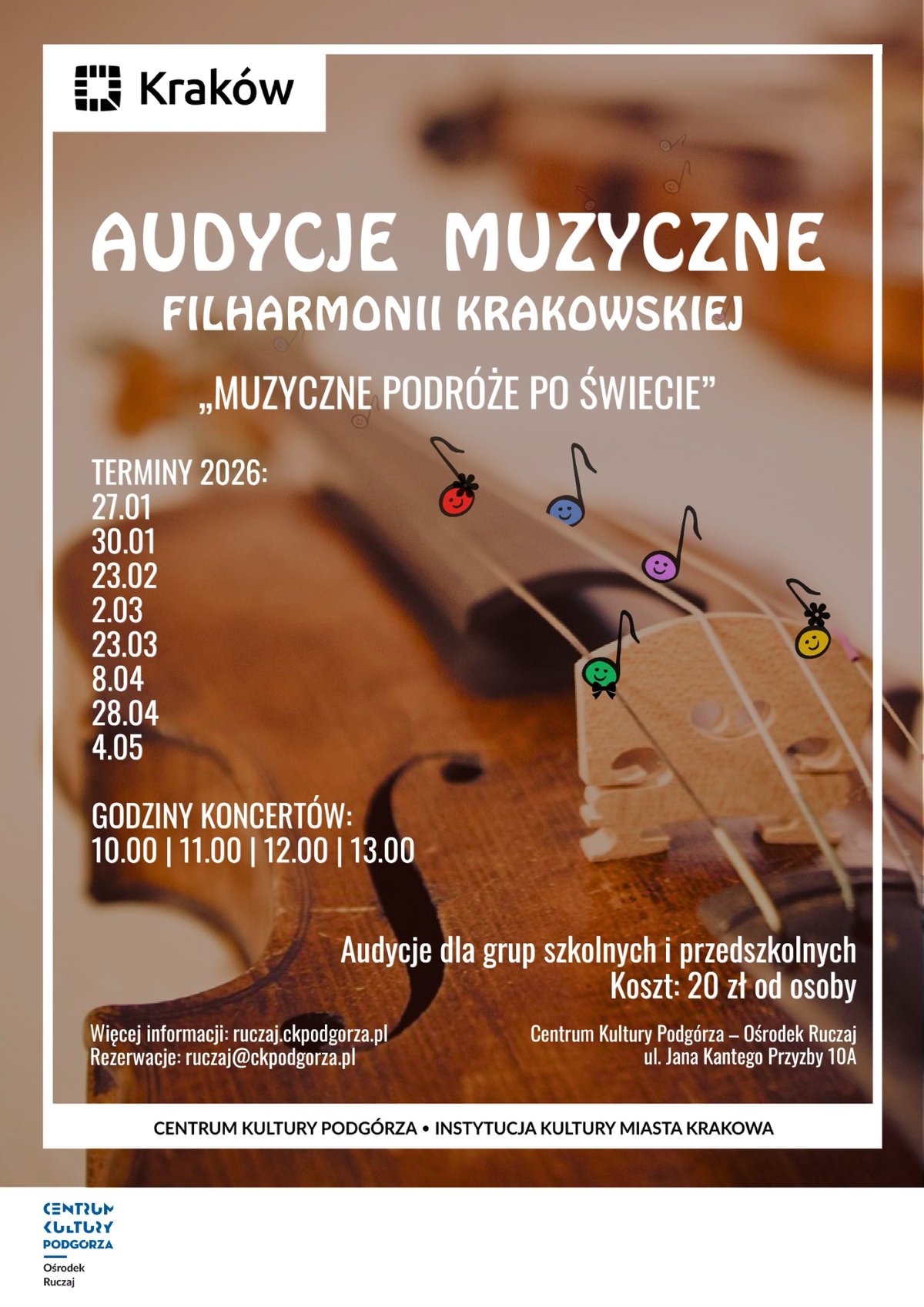 Audycje muzyczne przygotowane przez muzyków Filharmonii Krakowskiej skierowane są do grup zorganizowanych