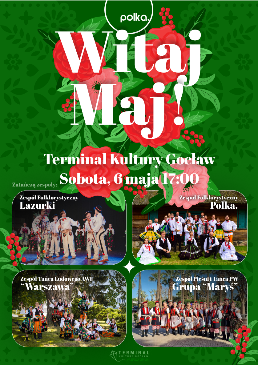 Zespół PolkaDot oraz Terminal Kultury Gocław zapraszają na wyjątkowy koncert z okazji święta narodowego Trzeciego Maja. Zespół Polkadot i zaprzyjaźnione zespoły folklorystyczne, działające na terenie Warszawy, zaprezentują piękne tańce i melodie z różnych stron Polski.