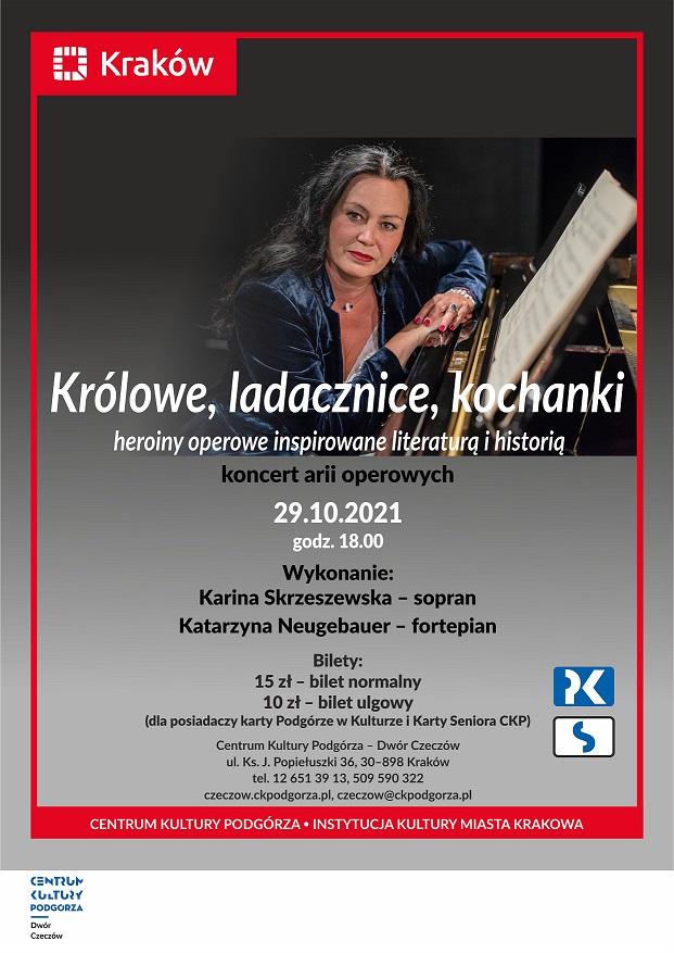 Zapraszamy 29 października (piątek) godz. 18.00 na koncert w wykonaniu Kariny Skrzeszewskiej pt. „Królowe, ladacznice, kochanki - heroiny operowe inspirowane literaturą i historią".