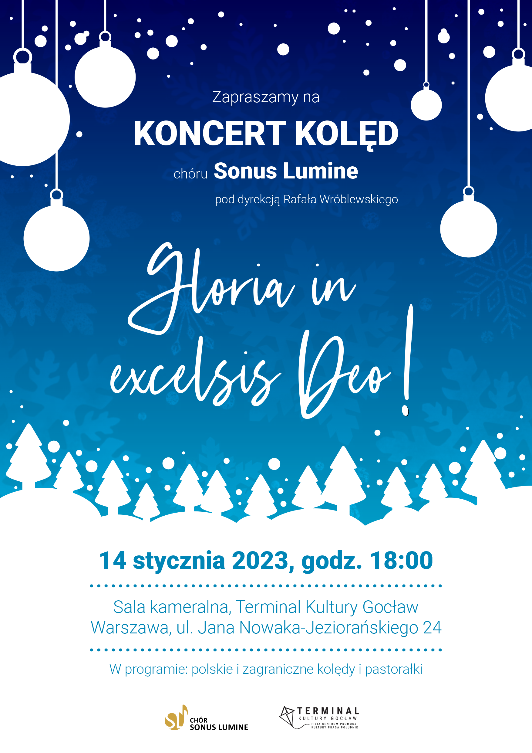 Podczas Koncertu Kolęd GLORIA IN EXCELSIS DEO, chór zaprezentuje polskie kolędy i pastorałki zaaranżowane na chór żeński w pięknej i unikatowej harmonii. Dodatkiem podczas koncertu będą utwory świąteczne z krajów anglojęzycznych z towarzyszeniem fortepianu.
