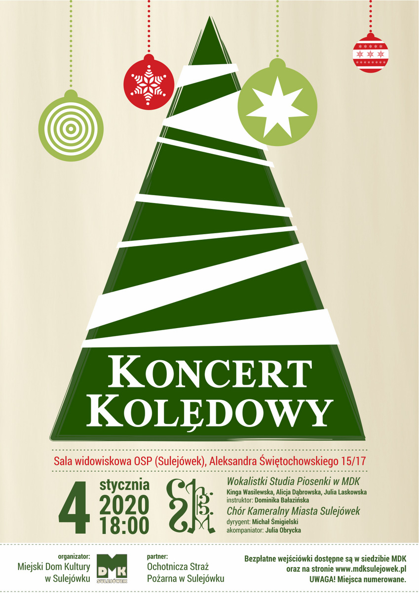 Koncert Kolędowy to wyjątkowe wydarzenie organizowane przez Miejski Dom Kultury w Sulejówku. Podczas tego wieczoru będą Państwo mogli usłyszeć najpiękniejsze utwory świąteczne i kolędy zaśpiewane przez wokalistki Studia Piosenki MDK oraz Chór Kameralny Miasta Sulejówek. Tego wieczora jeszcze raz przeniesiemy się do stajenki w Betlejem.