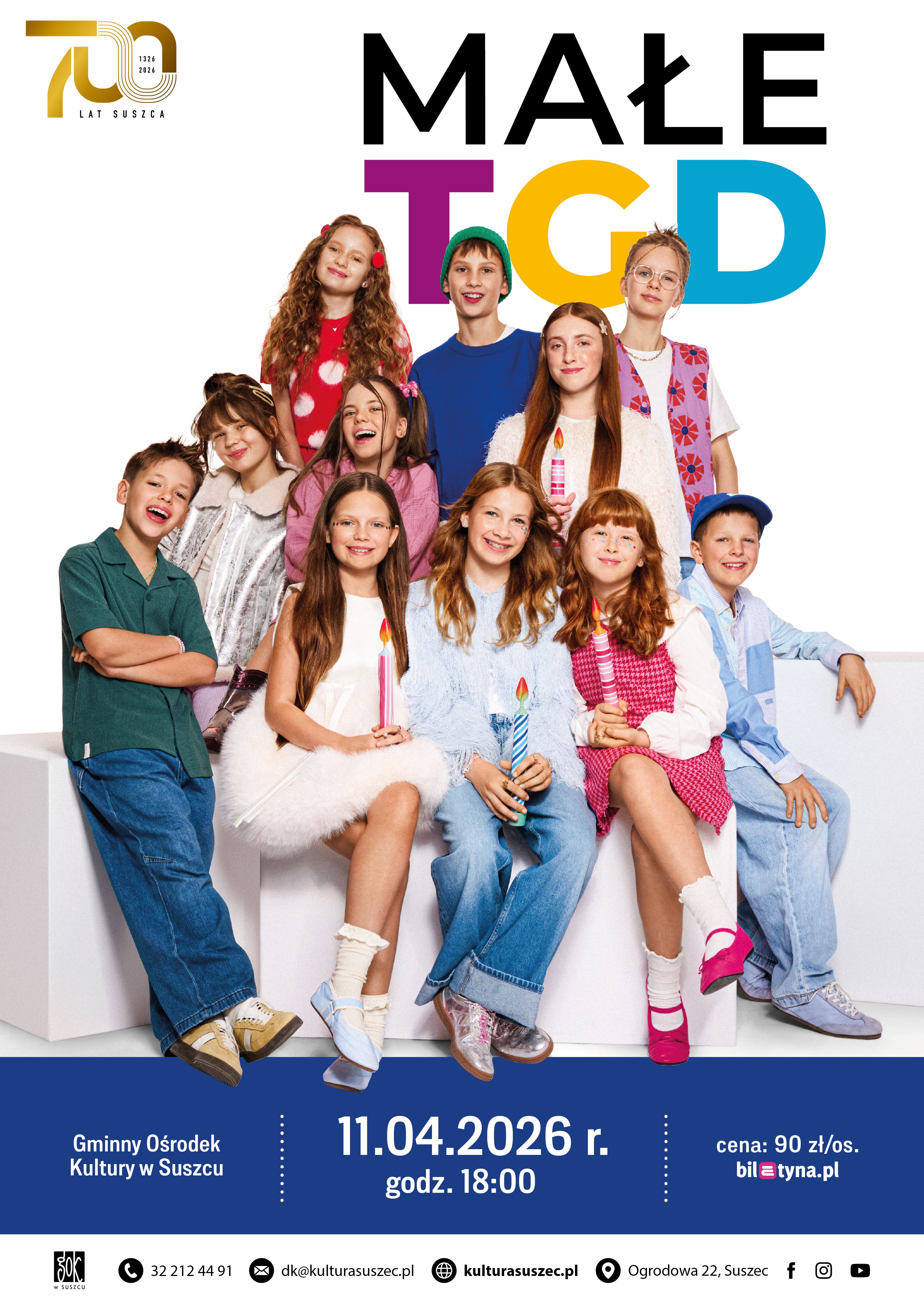 Małe TGD to grupa przyjaciół i zgrana muzyczna drużyna, którą łączą wyjątkowe głosy, ciekawe charaktery a przede wszystkim wspólna pasja. Zespół koncertuje na żywo, a każdy występ jest jak prawdziwy Dzień Dziecka! Koncerty Małego TGD zapewniają nie tylko dużą dawkę dobrej muzyki z przesłaniem, ale dużo, dużo więcej. To wspaniała okazja do zabawy, wzruszeń, chwil refleksji i tworzenia niezapomnianych wspomnień dla całej rodziny!