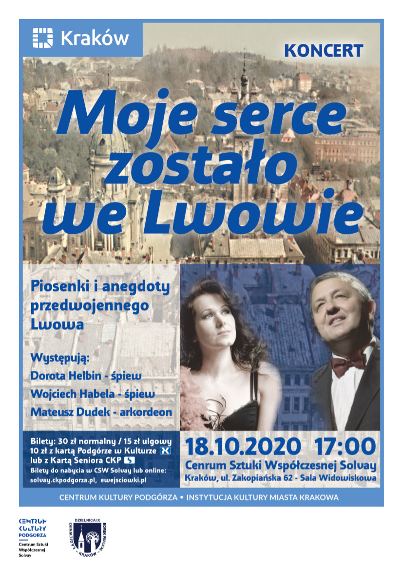 Wykonawcy: Dorota Helbin - śpiew Wojciech Habela- śpiew Mateusz Dudek- akordeon W programie: piosenki przedwojennego Lwowa