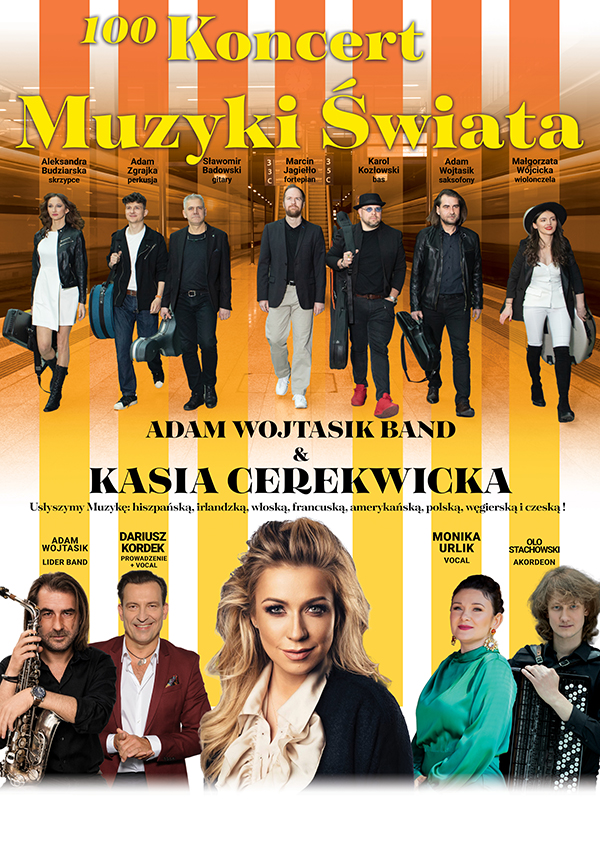 Zapraszamy na 100 ( setny) Koncert Muzyki Świata z specjalnym udziałem Kasi Cerekwickiej .Wyjątkowe aranżacjach,emocje, energia i świetna zabawa – nie może Cię zabraknąć! 🎷🌟🎤Koncert Muzyki Świata – Adam Wojtasik Band & Kasia Cerekwicka.