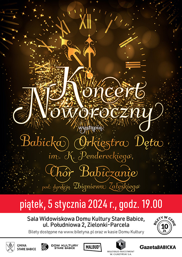 Jeśli marzycie o tym, by początek nowego roku uczcić w sposób wyjątkowy, w otoczeniu dźwięków tradycyjnych polskich kolęd, pastorałek oraz światowych utworów świątecznych i noworocznych to zapraszamy na „Koncert Noworoczny” do Sali Widowiskowej Domu Kultury Stare Babice.