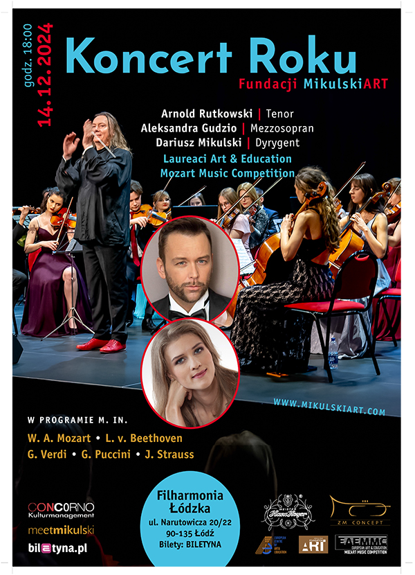 Na scenie wystąpią gwiazdy światowego formatu: tenor Arnold Rutkowski i mezzosopran Aleksandra Gudzio, a także utalentowani laureaci Art & Education Mozart Music Competition.