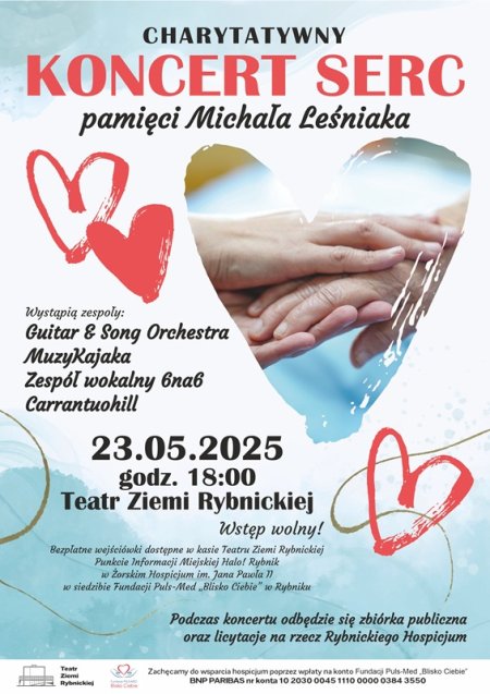 Podczas koncertu odbędzie się zbiórka publiczna oraz licytacje na rzecz powstającego Rybnickiego Hospicjum.