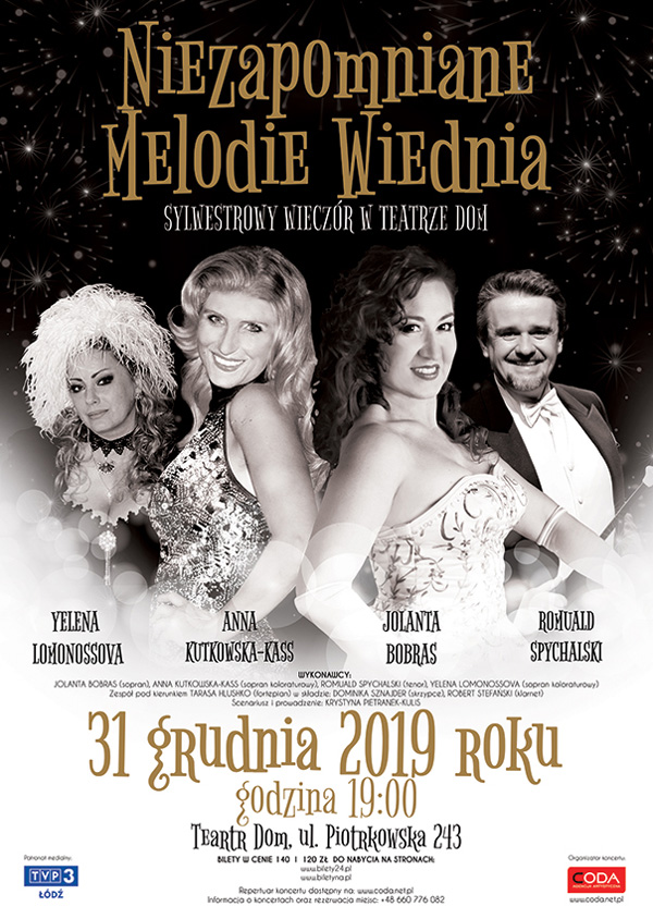 Ośmielając się przypuszczać, że sympatie muzyczne naszej wspanialej, współczesnej publiczności nie odbiegają daleko od tych sprzed wieku, proponujemy na sylwestrowy wieczór koncert złożony z najpopularniejszych utworów wiedeńskich kompozytorów - od upajających walców Johanna Straussa po pieśni, arie i duety twórców wesołego teatru muzycznego oraz wirtuozowskie miniatury skrzypcowe.