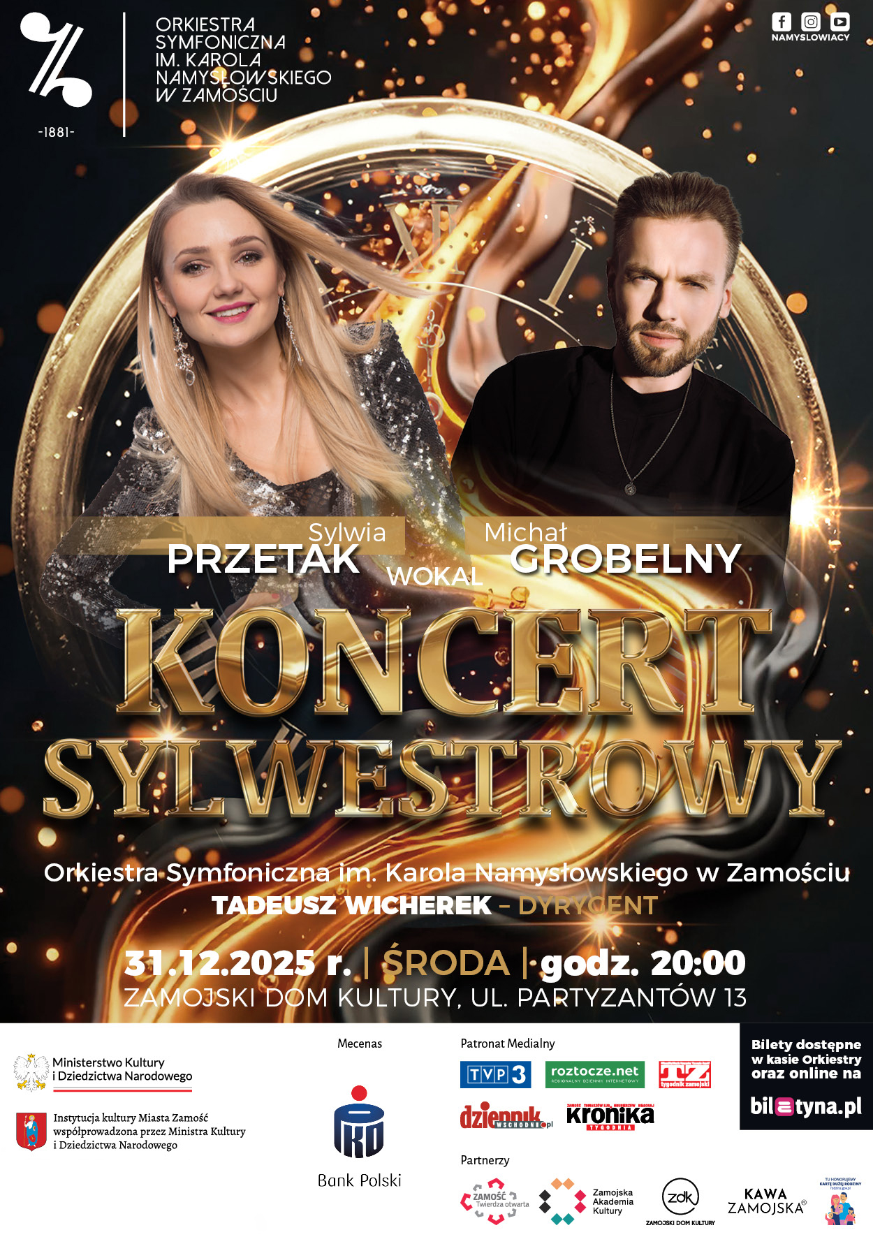 Pożegnamy rok 2025 z rozmachem, energią i muzyką na najwyższym poziomie! Koncert Sylwestrowy Orkiestry Symfonicznej im. Karola Namysłowskiego w Zamościu to gwarancja niezapomnianych wrażeń, pełnych blasku, emocji i doskonałej rozrywki.