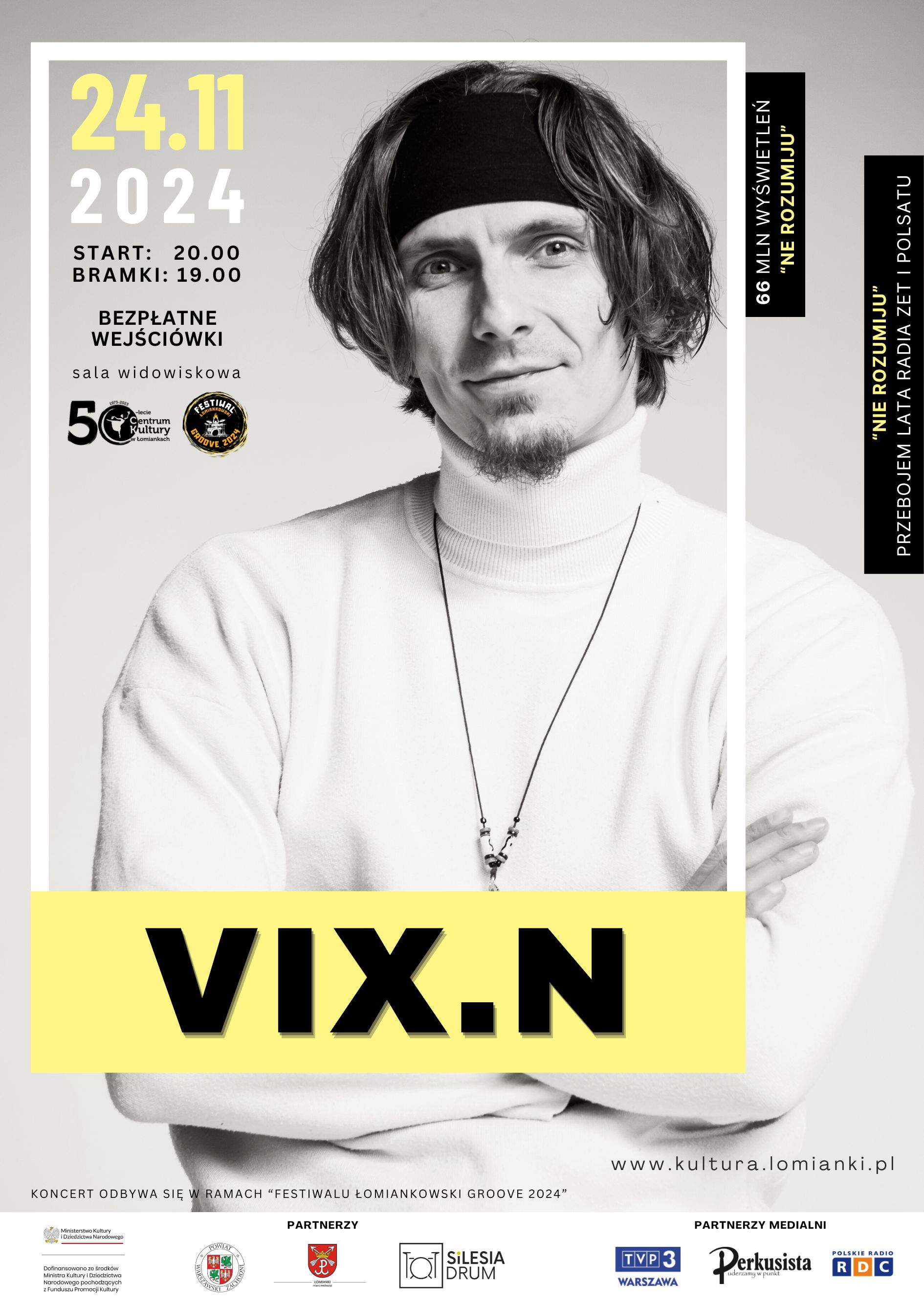 Vix.N, wokalista, raper i producent, rozpoczął karierę w 2001 roku i do dziś pozostaje aktywny, wydając prawie 20 albumów. Jego utwory, takie jak platynowe "Melodio" i "Romantyczna Miłość" (z udziałem Mery Spolsky), przyniosły mu uznanie i nowych fanów. Ostatnie albumy "Serce" i "Nove Serce" wzbogaciły jego dyskografię o ballady country-rapowe oraz melancholijne, melodyjne utwory. Znany ze współpracy z takimi artystami jak Rychu Peja, VNM, Fokus, czy Opał, nieustannie eksperymentuje z różnymi gatunkami muzycznymi. Wciąż zdobywa nowych fanów dzięki swojej otwartości na muzyczne nowości i unikalnym połączeniom stylów.