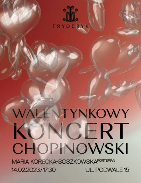 Zapraszamy do Sali Koncertowej Fryderyk na Walentynkowy Koncert Chopinowski 14 lutego o godz. 17.30.