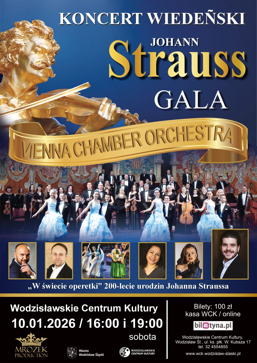 Wodzisławskie Centrum Kultury już w styczniu zaprosi swoją publiczność w podróż do roztańczonego i magicznego Wiednia, gdzie będą rozbrzmiewać najpiękniejsze arie, duety, walce i polki Johanna Straussa, Franca Lehara czy Imre Kalmana. To wszystko za sprawą Koncertu Wiedeńskiego, który WCK zaplanowało na 10 stycznia 2026 r.