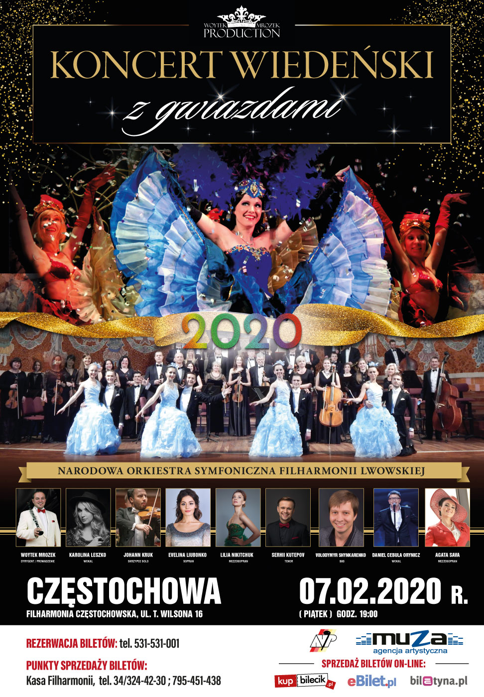 Zapraszamy Państwa w podróż do romantycznego Wiednia, magicznego świata operetki, gdzie będą rozbrzmiewać najpiękniejsze arie, duety, walce i polki Johanna Straussa. Gdzie, w pełnych zachwytu dźwiękach, będzie można usłyszeć szelest długich sukien, huk rozlewanego szampana, czy miłosne westchnienia w alkowach. Wybitne kompozycje w wykonaniu Narodowej Orkiestry Filharmonii Lwowskiej oraz międzynarodowej klasy solistów sceny operetkowej, operowej, musicalowej oraz pop, przeniosą słuchaczy do ojczyzny walca, polki, a także do Nowego Jorku. Artyści zaprezentują niezwykły kunszt wokalny i wykreują dla Państwa najwspanialsze światowe arie, piosenki, szlagiery i duety miłosne. Niespodzianką wieczoru będą niezwykłe osobowości grupy QuattroVoci, która w styczniu 2019 po raz pierwszy pobiła serca polskiej publiczności. QuattroVoci wracaja do Polski w 2020 roku i zaprezentuje swój nowy repertuar, jakże lubiany przez melomanów operetki, musicalu i muzyki filmowej. QuattroVoci to Evelina Liubonko sopran, Lilia Nikitchuk mezzosopran, Serhii Kutepov tenor i Volodymir Shynkarenko bas.