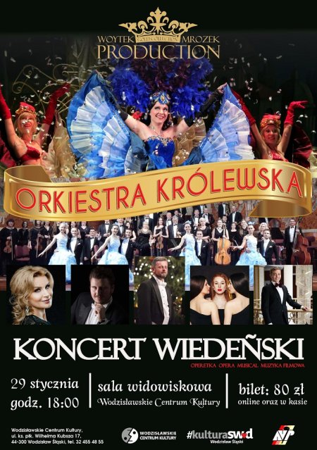 Koncert Wiedeński odbędzie się 29 stycznia 2022 r. o godzinie 18:00. Bilety w cenie 90 zł do do nabycia w kasie WCK i sprzedaży online. Kasa czynna na pół godziny przed seansami filmowymi i wydarzeniami oraz w czwartki w godzinach 10:00-12:00.