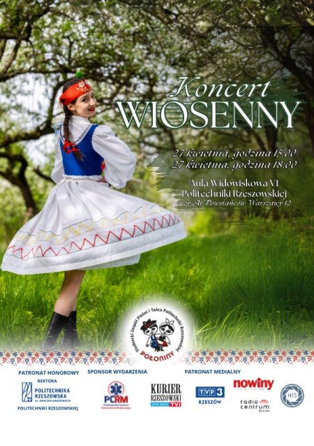 Już 27 kwietnia zapraszamy na Koncert Wiosenny w wykonaniu Studenckiego Zespołu Pieśni i Tańca Politechniki Rzeszowskiej Połoniny! 🎤💃🕺