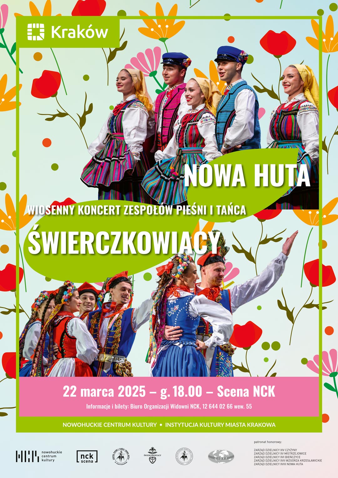 W koncercie zaprezentowane będą pieśni i tańce z różnych regionów kraju oraz polskie tańce narodowe. Historię tych dwóch zespołów łączą wybitne postaci świata folkloru: Anatola Kocyłowskiego - pedagoga, choreografa i wieloletniego kierownika artystycznego Zespołu NOWA HUTA, który także tworzył choreografie dla Zespołu ŚWIERCZKOWIACY oraz Andrzeja Radzika - pedagoga, muzyka i wieloletniego kierownika muzycznego Zespołu ŚWIERCZKOWIACY, który był twórcą wielu opracowań muzycznych dla ZPiT NOWA HUTA.