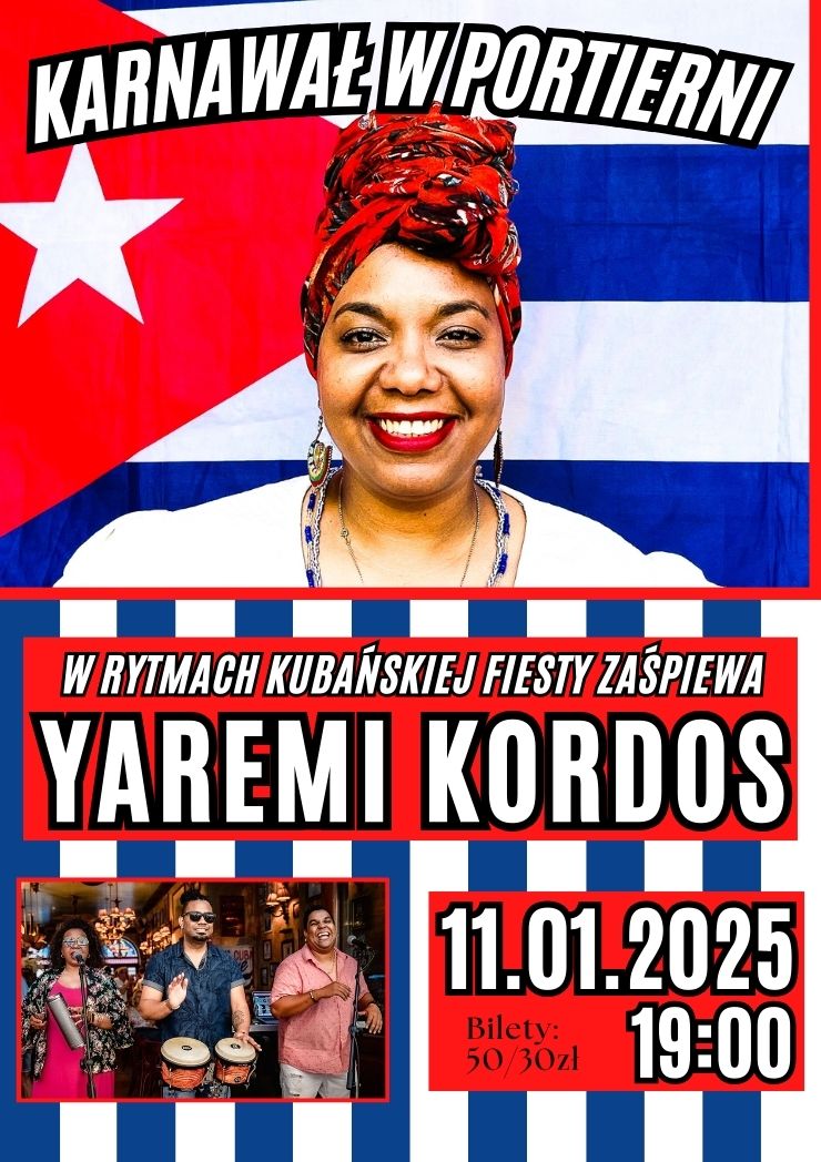 Zapraszamy na koncert Yaremi de las Mercedes Kordos, kubańskiej piosenkarki mieszkającej od 20 lat w Polsce. Ekspresja i żywiołowość koncertu Yaremi zabiera nas w podróż po tradycyjnej muzyce kubańskiej oraz kulturze wyspy jak wulkan gorącej. Od najmłodszych lat artystka poruszała się w barwnym świecie kubańskiej bohemy. Miała okazję i zaszczyt współpracować z wielkimi gwiazdami muzyki kubańskiej, a zwłaszcza z Divą Buena Vista Social Club Omarą Portuondo. Na polskim rynku muzycznym artystka jest znana jako jurorka programu Śpiewajmy Razem All Together Now.