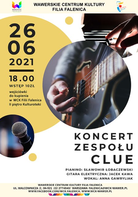 Zapraszamy na Koncert muzyki rozrywkowej Zespołu Clue w składzie: Sławomir Łobaczewski, Jacek Kawa, Anna Gawryliak.