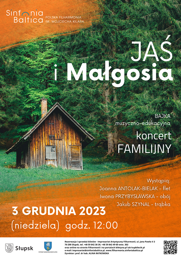 Któż nie zna bajki o Jasiu i Małgosi? Wspaniały polski tekst autorstwa Jana Brzechwy ilustrowany przez 3 instrumenty dęte: flet (Joanna Antolak-Bielak), obój (Iwona Przybysławska) i trąbkę (Jakub Szynal) jest ciekawą muzyczną przygodą dla całej rodziny. Dzieci nie będą wyłącznie słuchaczami - nauczą się również piosenki, którą na zakończenie wykonają wspólnie z muzykami. Z pewnością chętnie też zatańczą do rytmu utworu La Cucaracha. Posłuchajmy więc raz jeszcze tej bajki z morałem, który uczy, by nie sięgać po cudze rzeczy i pokazuje, jak dobro wygrywa ze złem.