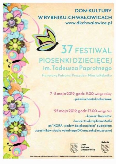 Zapraszamy na finał koncertu laureatów 37. Festiwalu Piosenki Dziecięcej im. Tadeusza Paprotnego oraz koncert z okazji Dnia Matki pt. "KORA - siedem bajek o miłości" z udziałem uczestników studia wokalnego Domu Kultury oraz sekcji muzycznej.