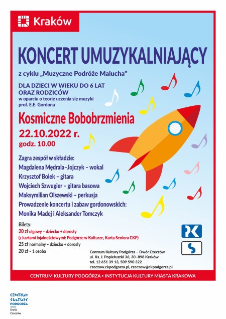 Koncert pt. "Kosmiczne Bobobrzmienia" odbędzie się w sobotę 22 października o godzinie 10:00 w Dworze Czeczów!