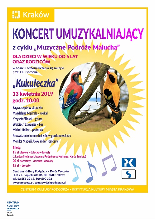 Koncert pt. "Kukułeczka" odbędzie się w sobotę 13 kwietnia o godzinie 10:00!