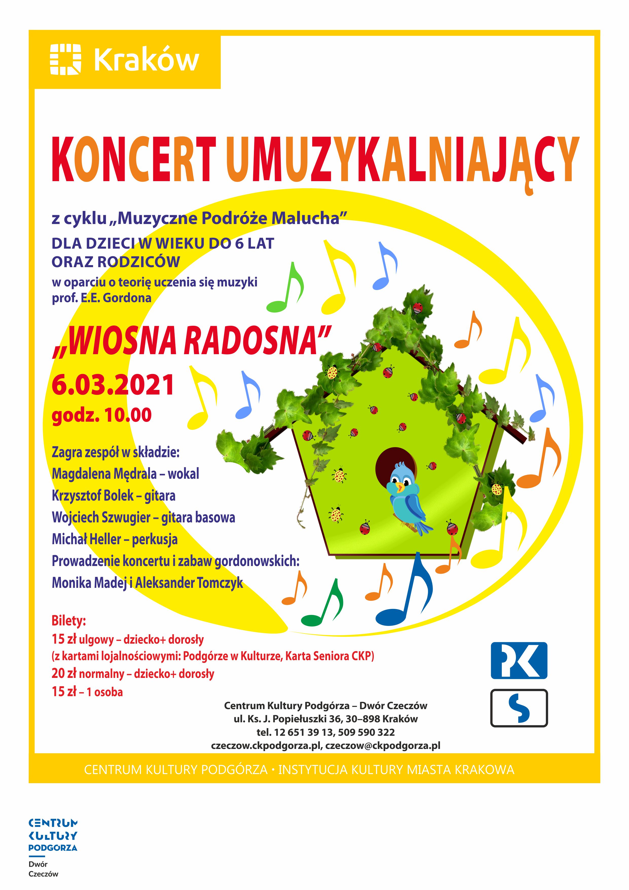 Zapraszamy 6 marca (sobota) godz. 10.00 na koncert umuzykalniający z cyklu „Muzyczne podróże malucha: Wiosna Radosna".