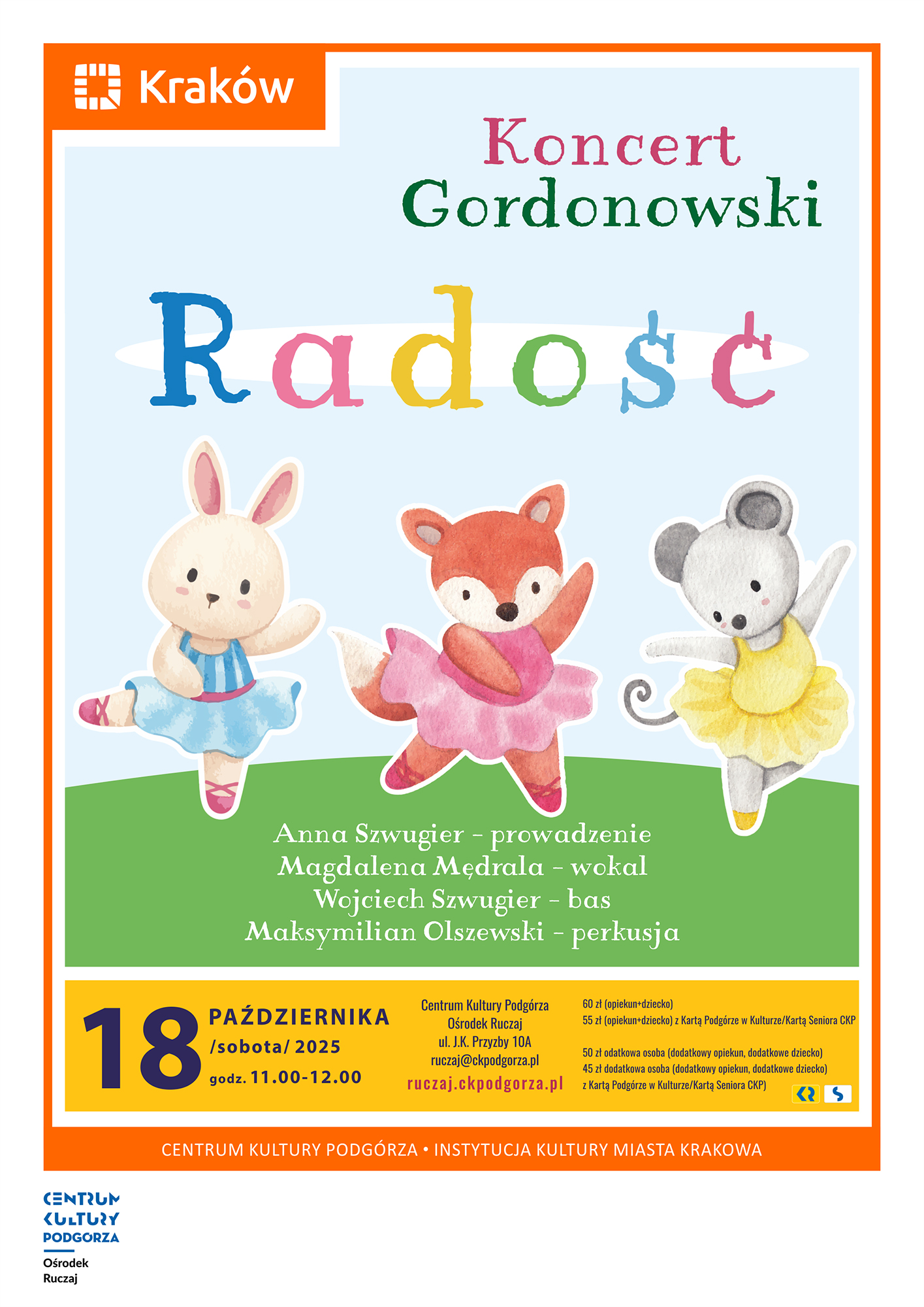 55 zł (opiekun+ dziecko) z Kartą Podgórze w Kulturze/Kartą Seniora CKP