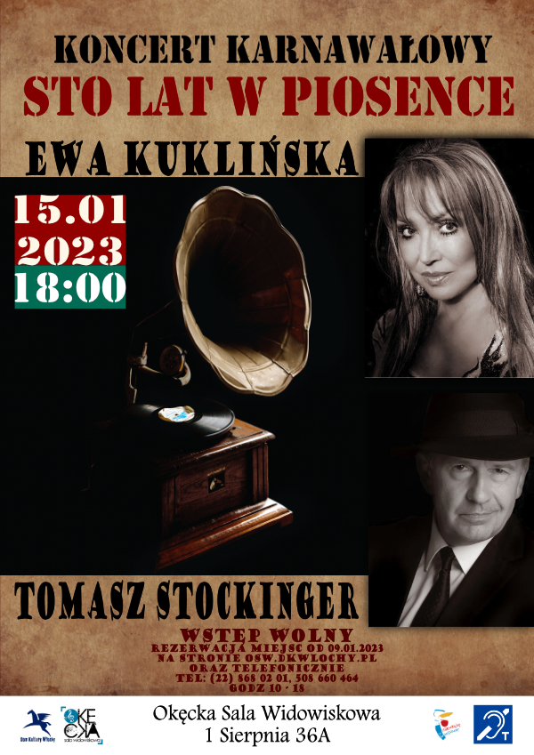 Dom Kultury "Włochy" zaprasza na Koncert karnawałowy „Sto lat w piosence” wykonaniu Ewy Kuklińskiej i Tomasza Stockingera!