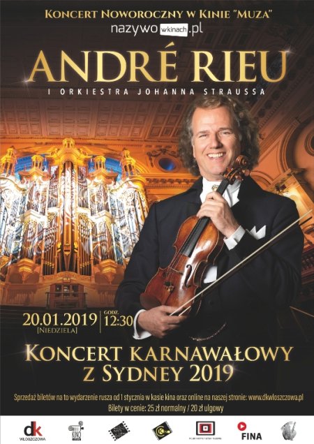 Popularny skrzypek André Rieu powraca do kin w całym kraju, aby zaprezentować specjalny koncert karnawałowy zarejestrowany w Sydney Town Hall w Australii. André mówi: „Jestem absolutnie zachwycony, że mogłem po raz pierwszy zarejestrować mój koncert noworoczny dla kin. Móc występować w historycznym Ratuszu w Sydney powoduje prawdziwy dreszczyk emocji i nie mogę się doczekać, aby podzielić się tym koncertem z publicznością na całym świecie. Mogę tylko obiecać: będzie dużo niespodzianek!”.