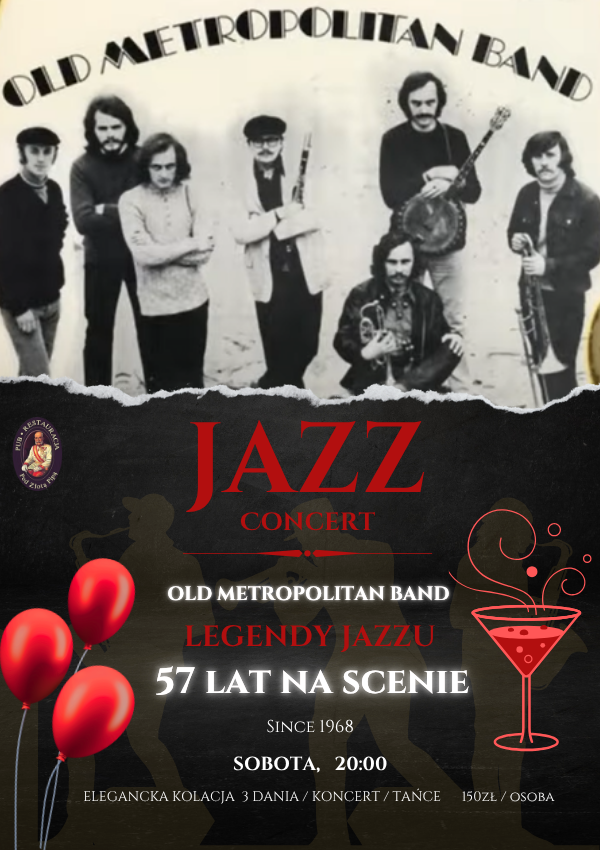 ✨𝐎𝐥𝐝 𝐌𝐞𝐭𝐫𝐨𝐩𝐨𝐥𝐢𝐭𝐚𝐧 𝐁𝐚𝐧𝐝, najstarszy krakowski zespół jazzowy, zabierze Cię w fascynującą podróż przez świat klasycznego jazzu. Przygotuj się na rytmiczne brzmienia, pełne pasji improwizacje oraz niezwykły wokal, które na długo zapadną w pamięć.