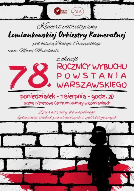 W 78. rocznicę wybuchu Powstania Warszawskiego, 1 sierpnia o godz. 20 usłyszymy najpiękniejsze pieśni powstańcze i patriotyczne w interpretacji muzyków orkiestry. Z Łomiankowską Orkiestrą Kameralną gościnnie wystąpi tenor Maciej Madaliński.