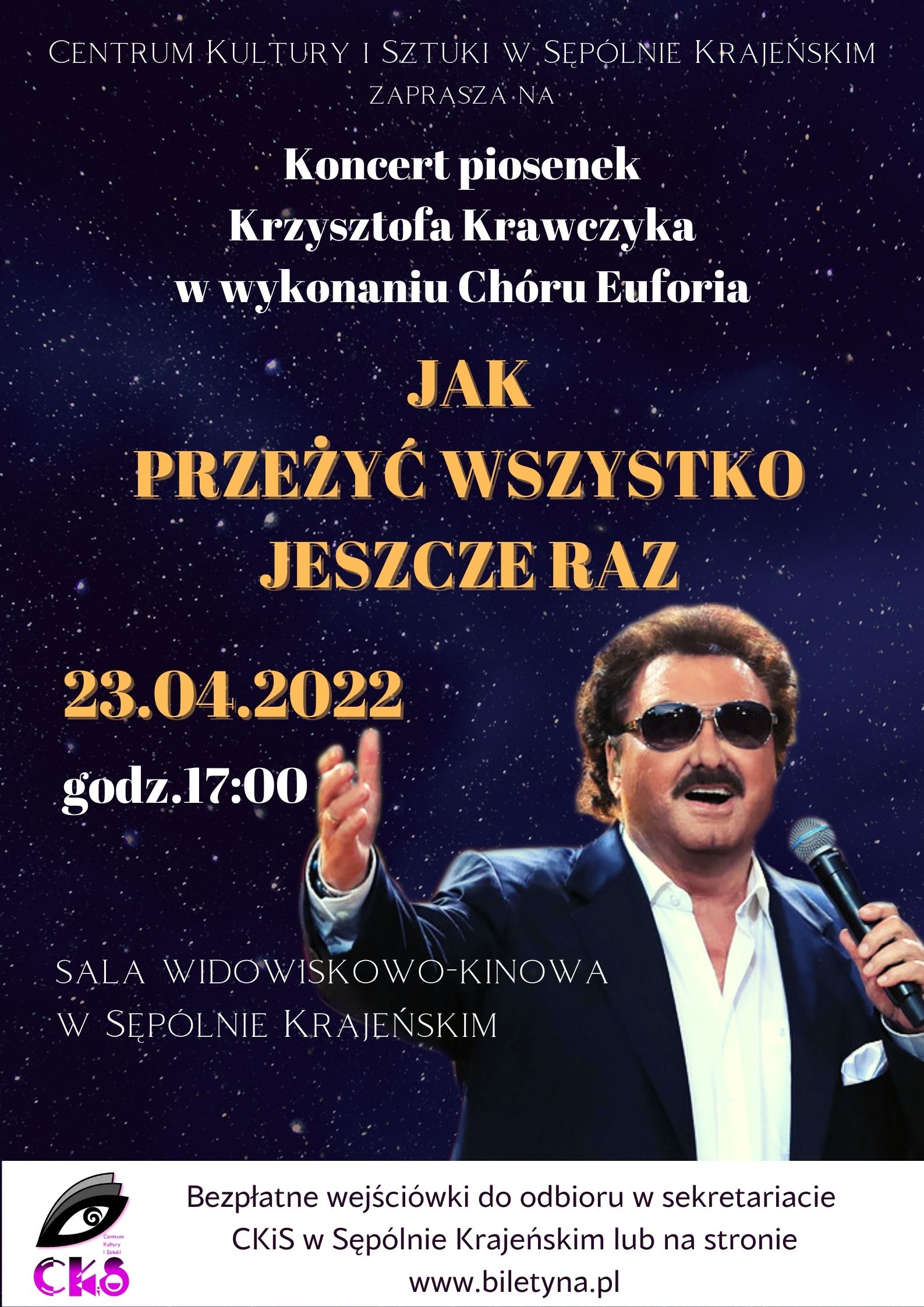 bezpłatne wejściówki do odbioru w sekretariacie CKiS