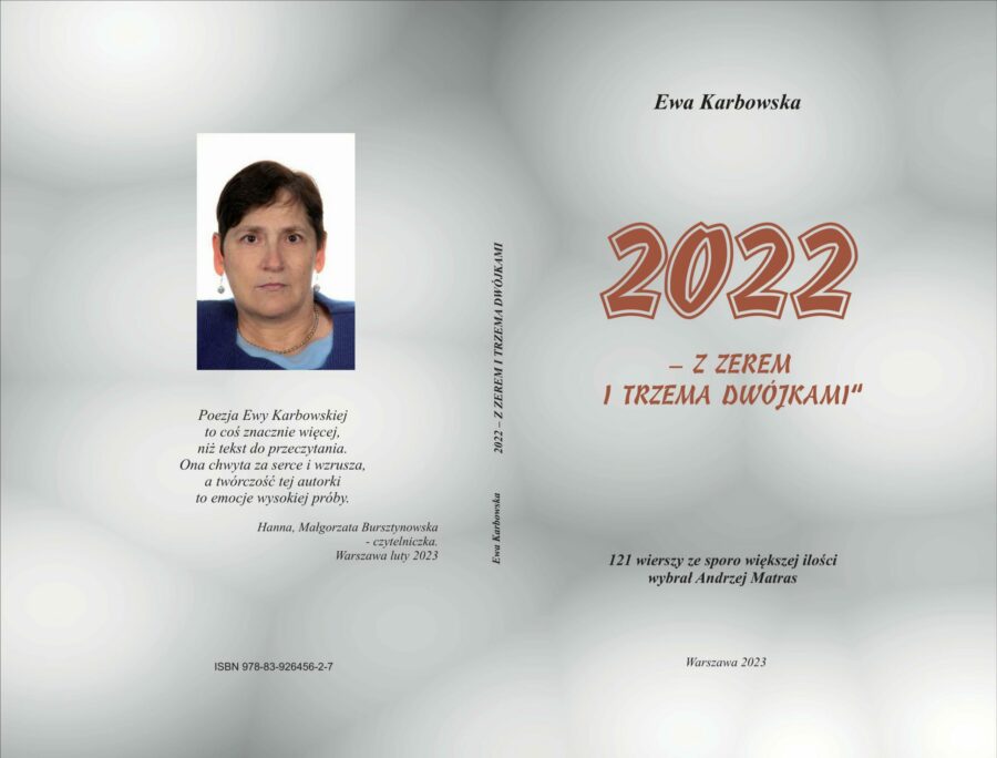 Spotkanie z twórczością Ewy Karbowskiej, pod pretekstem ostatniego tomiku Autorki 2022 ZEREM I TRZEMA DWÓJKAMI oraz piosenek do tekstów poetki porozmawiamy także o poezji w ogóle.