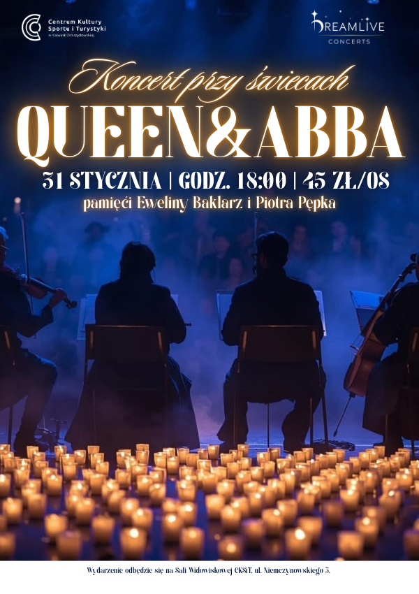 𝗞𝗼𝗻𝗰𝗲𝗿𝘁 𝗽𝗿𝘇𝘆 𝘀́𝘄𝗶𝗲𝗰𝗮𝗰𝗵: 𝗤𝘂𝗲𝗲𝗻 & 𝗔𝗕𝗕𝗔 Pamięci Eweliny Baklarz i Piotra Pępka