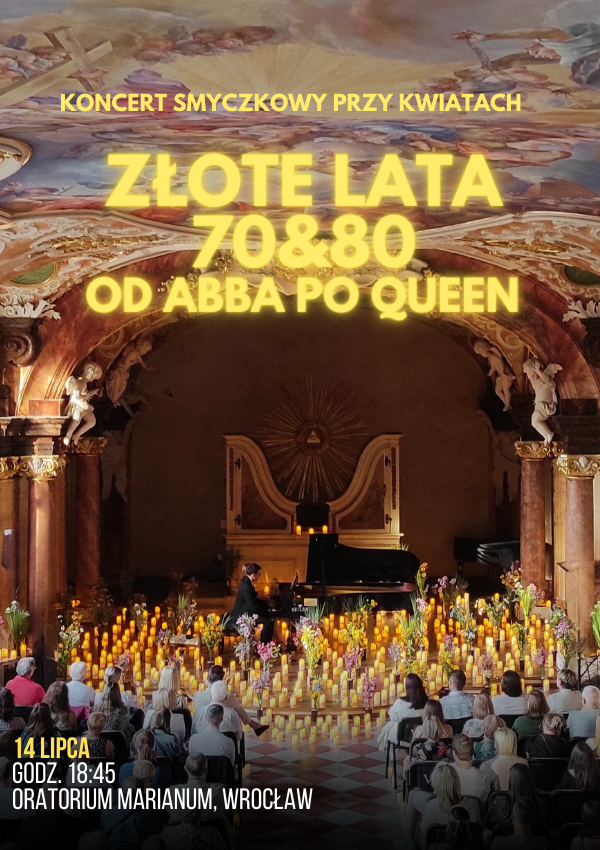 · Uwaga: Ze względu na fakt, że Oratorium jest salą muzealną nie mamy możliwości zasłonięcia okien, dlatego w pomieszczeniu w godzinach koncertu będzie jasno. Piękną i niepowtarzalną atmosferę stworzą dla Państwa setki letnich kwiatów, delikatne światło świec oraz piękna i nastrojowa muzyka.