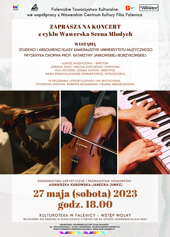 Falenickie Towarzystwo Kulturalne we współpracy z Wawerskim Centrum Kultury Filia Falenica zaprasza na koncert z cyklu Wawerska Scena Młodych.
